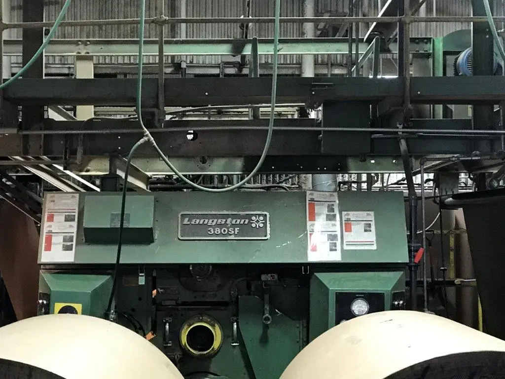 87" / 2200 Langston/Marquip Corrugator. Used LANGSTON, MARQUIP Single Wall corrugating line available. Includes 98" Langton Fingerless Single Facer, multiple Langston roll stands and Marquip splicers, glue unit, double preheater, rotary shear, slitter/scorer, cut off, and downstacker.