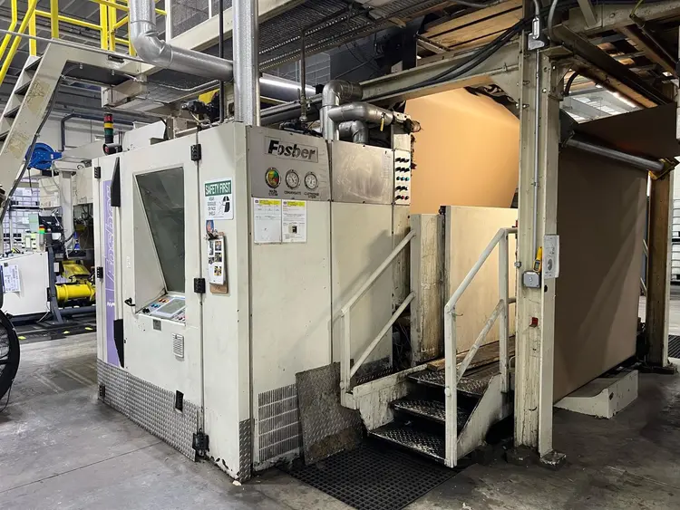 98" / 2500 mm FOSBER Single Facer, model SMART from 2010, in used condition. It includes C-Flute, E-Flute, and B-Flute cartridges. Drive specifications: RHDPC/LHDPG. Ideal for enhancing production efficiency.
